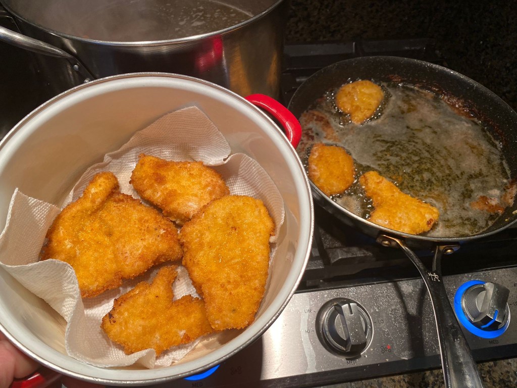מלמדת איך מכינים שניצלים שרק ישראלים יודעים להכין עם מתכון הזהב של פירורי הלחם של אוסם , ולקבל על זה מחמאות , כאילו אני פוררתי את הפירורים .