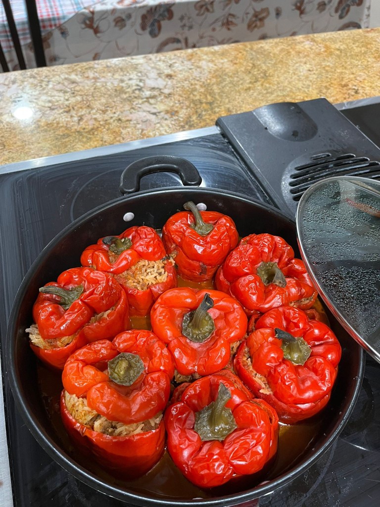 מלמדת להכין פלפלים ממולאים (בלי שמץ של חריף) את החברה ההודית החדשה שלי